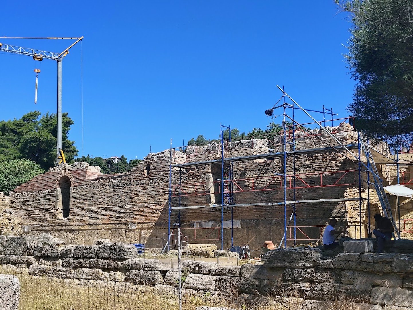 Αρχικά αναγνωρίστηκε ως το εργαστήριο του Φειδία από τη γαλλική αποστολή το 1829 – ένας ισχυρισμός που επιβεβαιώθηκε αργότερα από γερμανικές ανασκαφές – το κτίριο υπέστη σημαντική μεταμόρφωση στα μέσα του 5ου αιώνα μ.Χ. Για να εξυπηρετήσει έναν ακμάζοντα χριστιανικό οικισμό, μετατράπηκε σε τρίκλιτη παλαιοχριστιανική βασιλική, την παλαιότερη γνωστή στην περιοχή της Ηλείας.