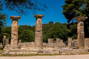 Built around 600 BC, the Temple of Hera is one of the earliest examples of Doric architecture. It housed the Hermes of Praxiteles and played a central role in the worship of Hera and Zeus in Olympia.